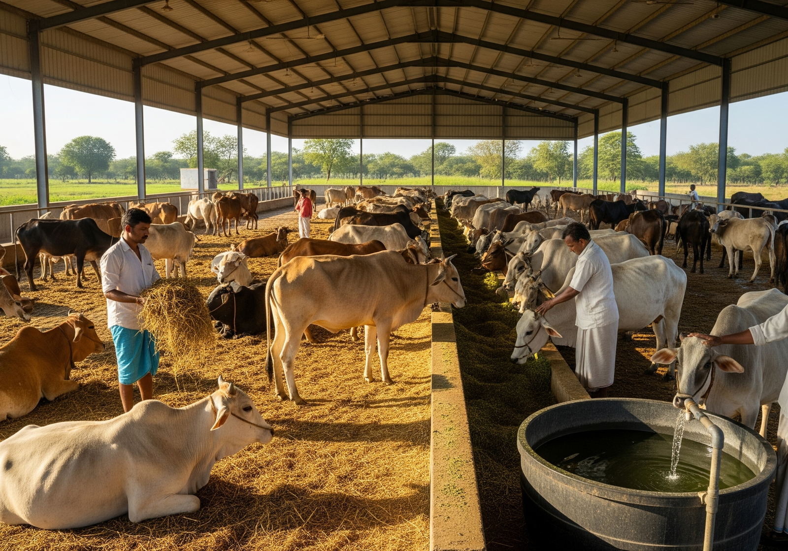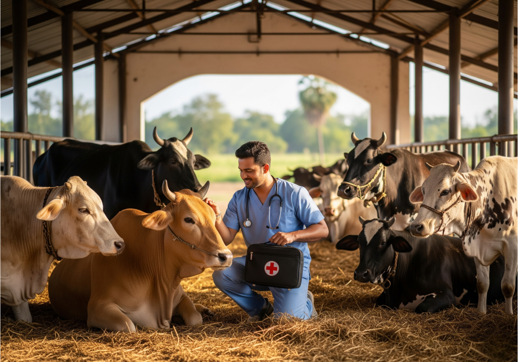 Safe shelter, healthy food, and daily medical support for rescued cows.