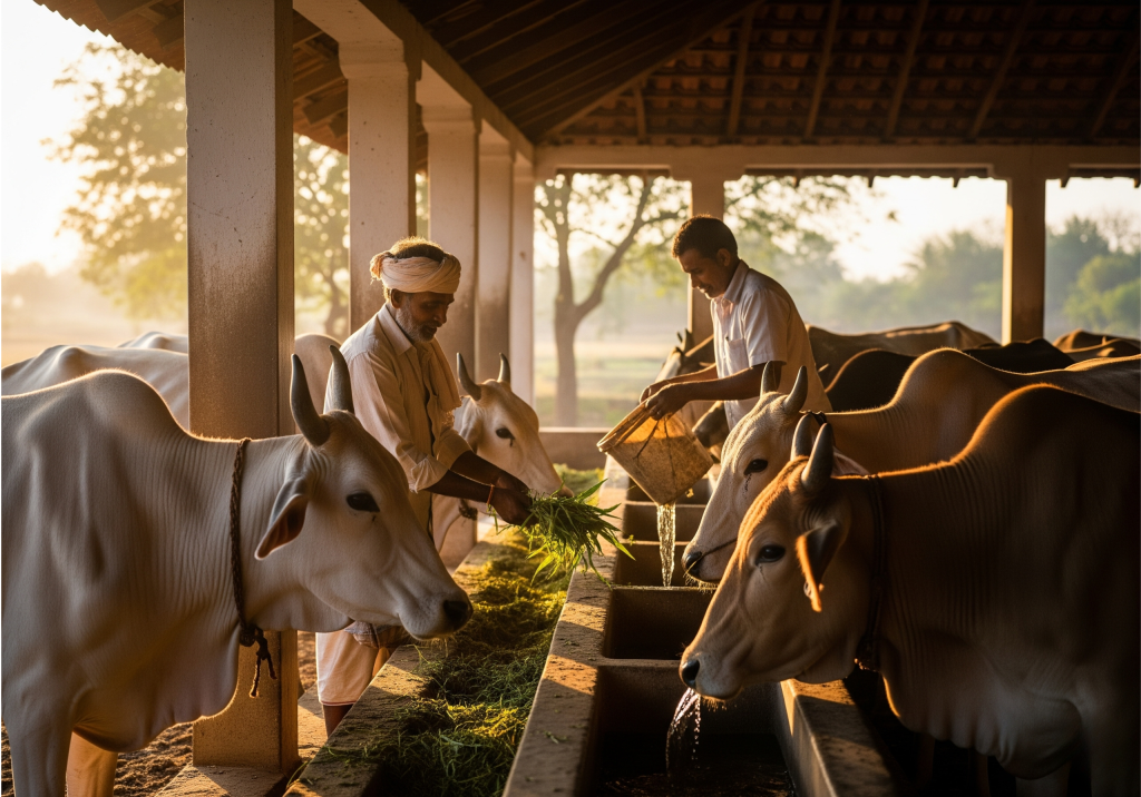 Gau Mata through hands-on seva and sustainable shelter services.